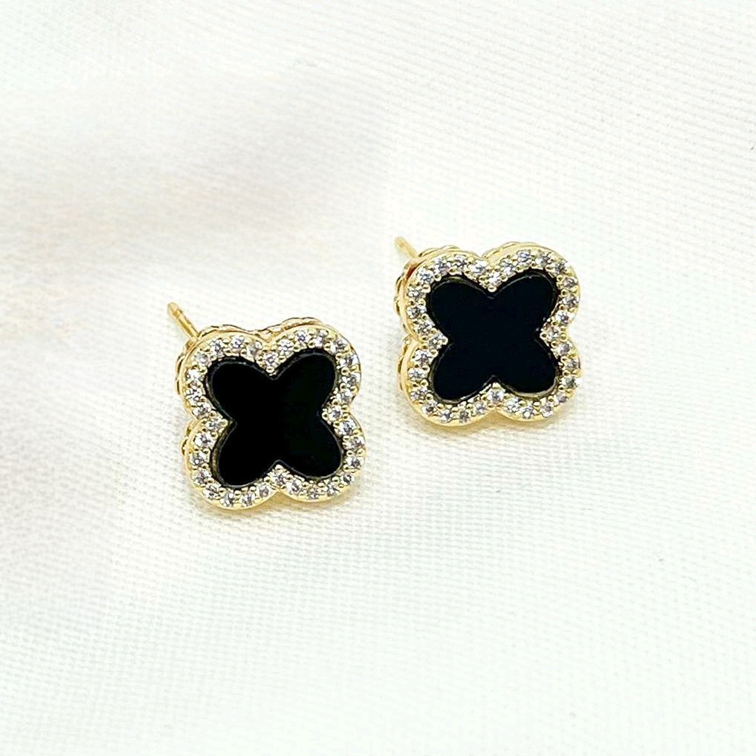 Brinco Trevo Preto com Borda Cravejada