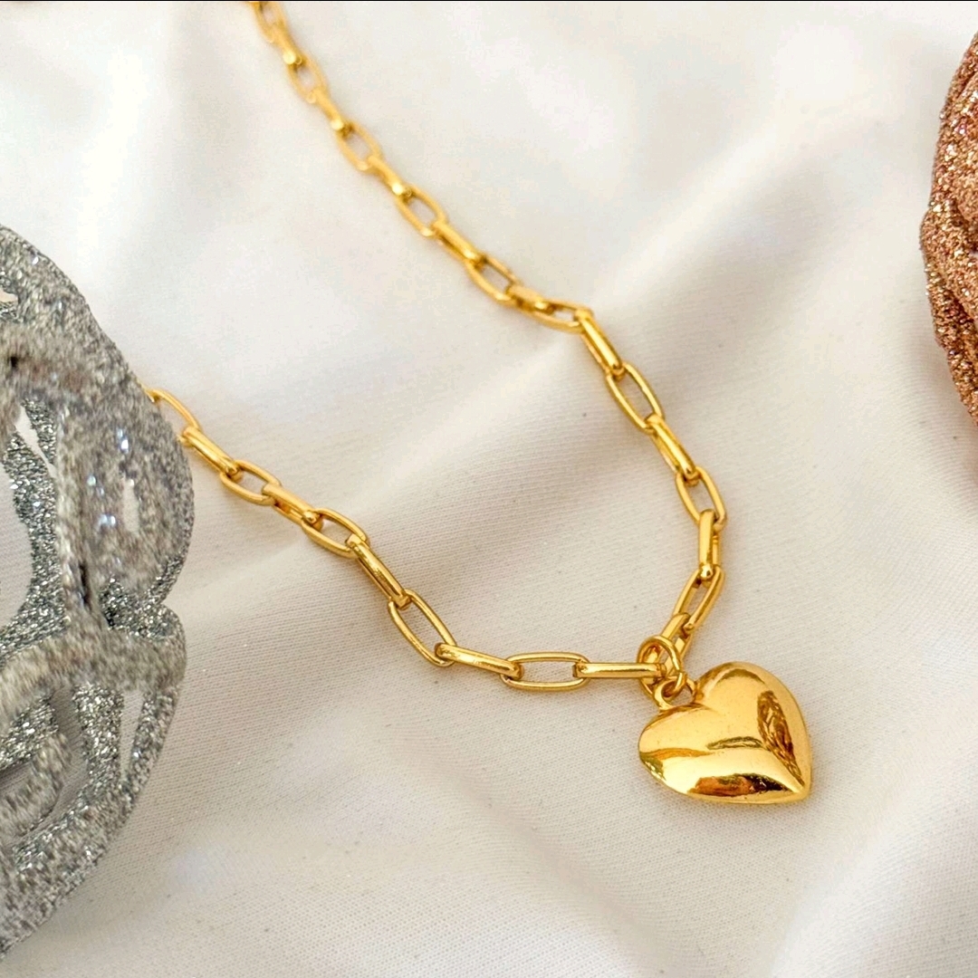 Colar Corrente Pingente Coração Bojudo